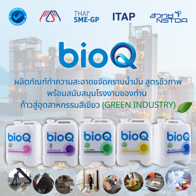 bioQ ผลิตภัณฑ์ทำความสะอาด สูตรชีวภาพ ย่อยสลายโมเลกุลน้ำมันให้มีขนาดเล็กลงและย่อยสลายในที่สุด