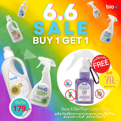 ทุกๆการสั่งซื้อในเดือนนี้ bioQ แจกฟรีผลิตภัณฑ์ทำความสะอาดและฆ่าเชื้อโรค อเนกประสงค์ สูตรพร้อมใช้ ราคา 79 บาท ซื้อกี่ขวดเราแถมให้ตามจำนวนขวด